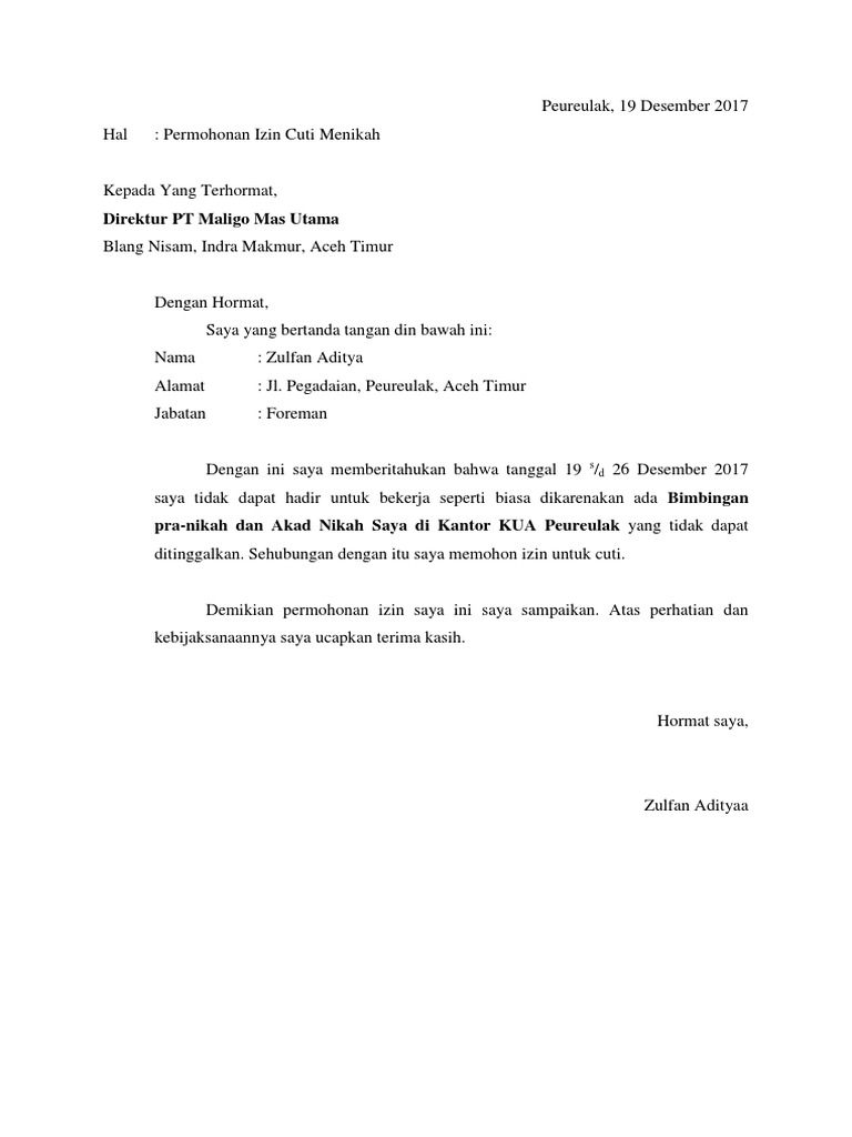 Contoh Surat Permohonan Cuti Menikah Untuk Guru from 1.bp.blogspot.com Maybe you would like to learn more about one of these? Check spelling or type a new query. We did not find results for: